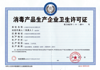 消毒産品生(shēng)産企業(yè)衛生(shē"↑€↓ng)許可(kě)證